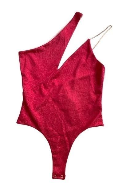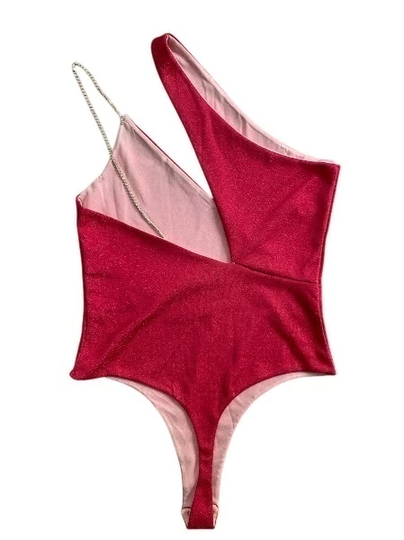 Body de lurex corte irregular con botones en la entrepierna, y una tira con strass.