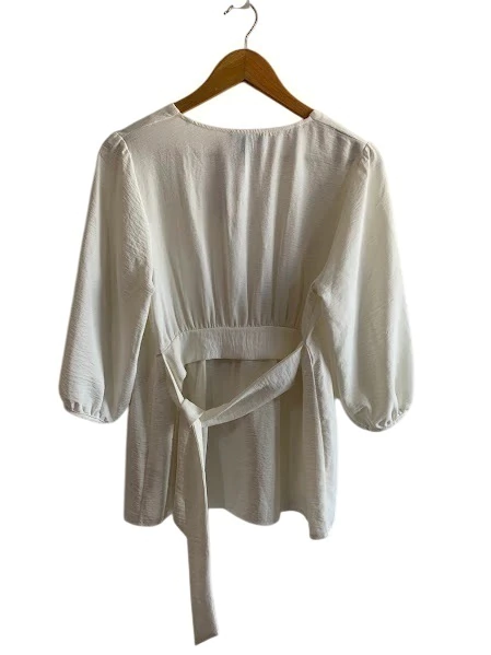 Camisa con lazo en cintura para ajustar y botones forrados.