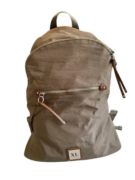 Mochila de microfibra con bolsillos en la espalda, en el frente.
