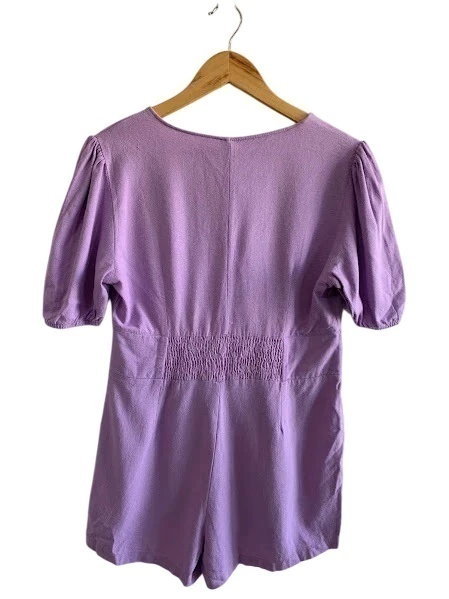 Mono de lino color lila, mangas princesa, con botones simil madera.