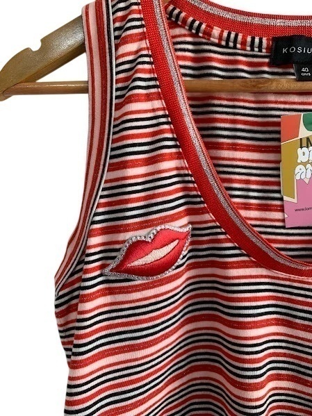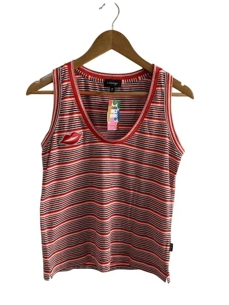 Musculosa de algodón escote en V con deatalle de aplique y lurez en cuello y mangas.
