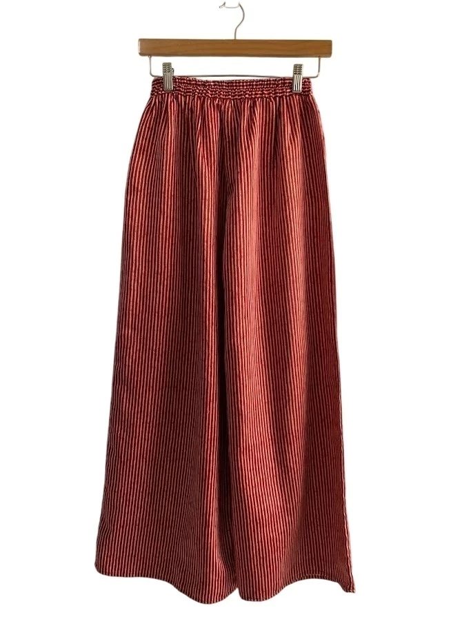 Pantalon de seda rayado con elastico en la parte de atras de cintura.