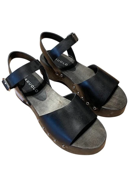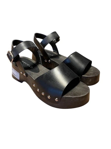 Sandalias de cuero con taco de madera y detalles de tachas. Super tendencia!