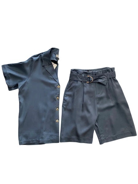 Set que incluye camisa mangas cortas talle 2 y bermuda talle 1 con cinto. Tela tencel. NUEVO CON ETIQUETA