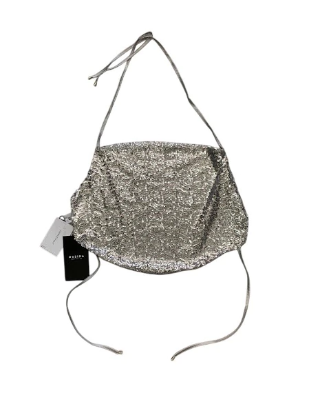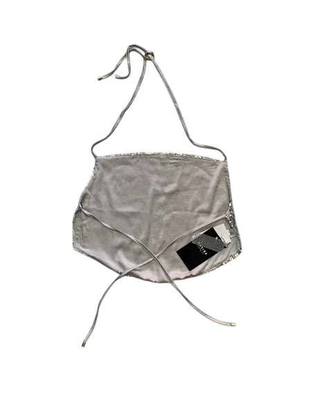 Top bordado con lentejuelas y espalda descubierta, con tiras para regular en cuello y sisa. NUEVO CON ETIQUETA.