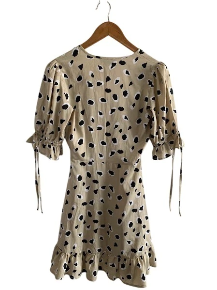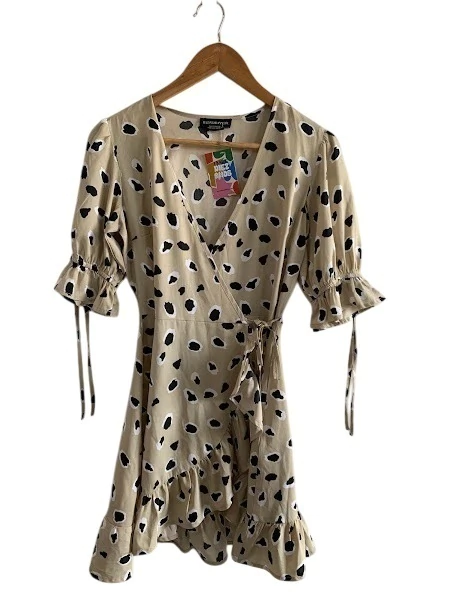 Vestido viscosa estampada, con lazo para atar en cintura de forma cruzada.